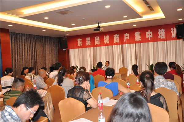 為確保東吳尚城7月中旬順利開業(yè),6月3日起,開發(fā)公司組織開展了入駐商戶集中培訓活動,40余家簽約商戶參加培訓。在當天上午的培訓中,開發(fā)公司相關部門負責人向商戶介紹了工程進展、入場裝修注意事項以及物業(yè)管理等方面的事宜,并詳細解答了商戶提出的問題。