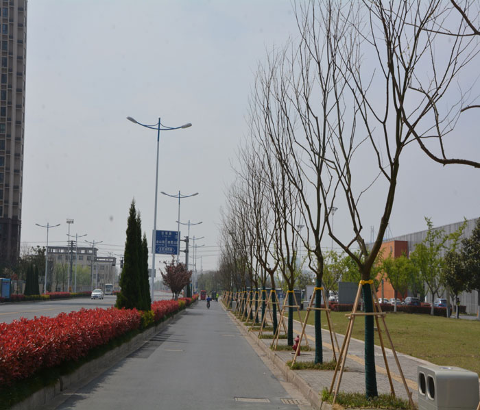 普陀山大道行道樹改造提升工程,此次共栽植烏桕樹木270株,烏桕是一種色葉樹種,屬落葉喬木,春秋季葉色紅艷奪目。普陀山大道作為工業(yè)區(qū)重要景觀道路,通過此次改造提升,將使普陀山大道形成一條具有季節(jié)色相變化的景觀道路,豐富園區(qū)的綠化環(huán)境,從而更加提高園區(qū)整體綠化景觀效果。
