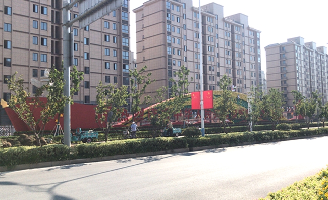 近期,走在道路上,園區(qū)居民會發(fā)現(xiàn)青海湖西路東入口南側(cè)設(shè)置一座建國70周年景觀雕塑,同時道路兩側(cè)路燈桿件懸掛國旗、中國結(jié)和70周年標識的中國結(jié)等各式各樣的節(jié)日氛圍。