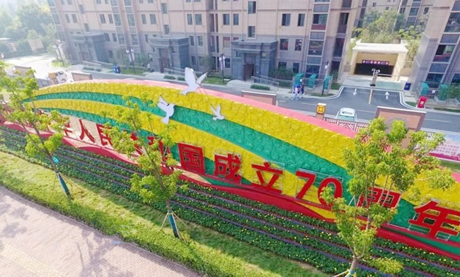 為迎接新中國成立70周年重大節(jié)日活動,切實營造熱烈慶祝新中國成立70周年,開發(fā)公司在氛圍實施中通過景觀協(xié)調(diào)、做到點線面的統(tǒng)一結(jié)合,相互銜接、相得益彰的整體效果,提升園區(qū)的城市內(nèi)涵品位,展示園區(qū)迎接建國70周年。