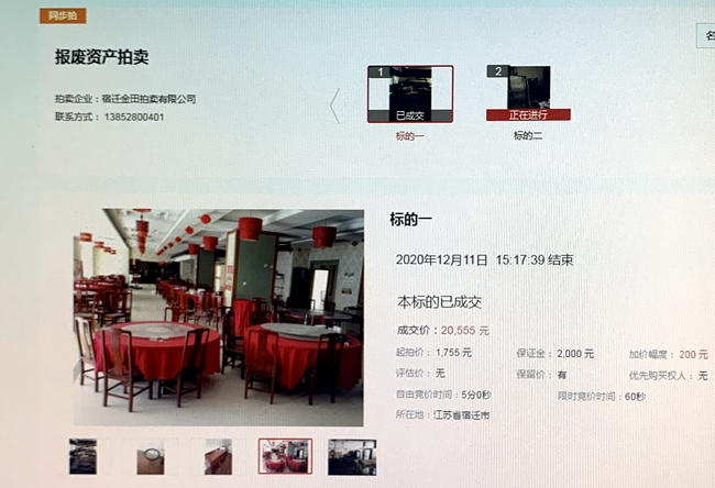 12月11日下午3時(shí),城發(fā)公司部分報(bào)廢廚具、桌椅等物資網(wǎng)上拍賣開始,10家競(jìng)買人,經(jīng)過(guò)17分39秒90次的緊張激烈競(jìng)價(jià),最終以20555元成交標(biāo)的,比評(píng)估價(jià)超出10倍。