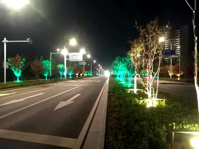 開發(fā)公司項(xiàng)目管理過程中,重點(diǎn)把控?zé)粼搭伾⒄斩燃盁艟咴煨?,在燈光運(yùn)用上主要使用白、黃、綠三色,突出西湖西路城市主干道的夜景效果。在施工中,克服冬雨季施工、大氣管控和車流量大等不利因素,嚴(yán)格控制施工工藝,打造高質(zhì)量工程。夜景工程亮燈后為園區(qū)南部區(qū)域夜景增光添彩,美化了園區(qū)環(huán)境、提高了園區(qū)品位。