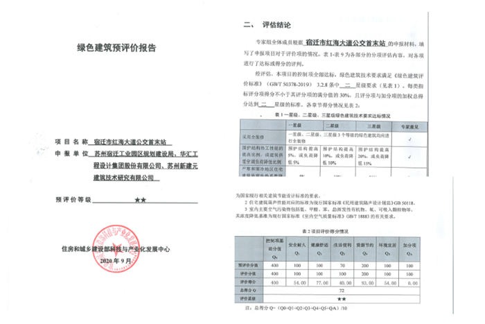 由開發(fā)公司代建的紅海大道公交首末站項目順利通過了住房和城鄉(xiāng)建設部科技與產業(yè)發(fā)展中心組織的第十四批綠色建筑預評價,并獲得預評價報告。該項目是按照最新《綠色建筑評價標準》(GB/T 50378-2019,以下簡稱“新國標”)進行評價的二星級綠色建筑。