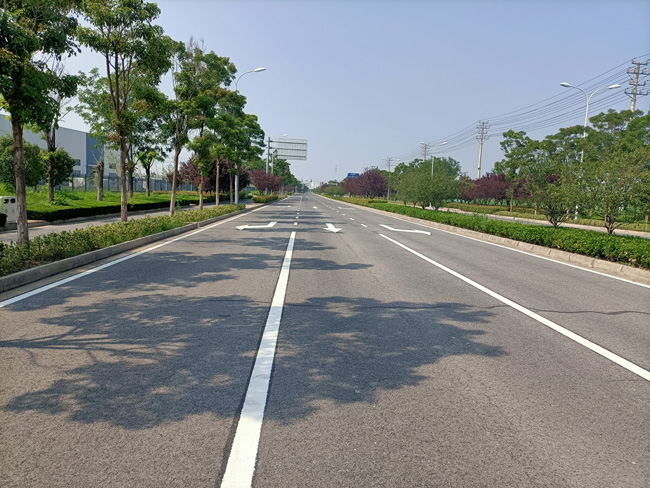 為避開高溫天氣施工作業(yè),保證工程質量,城發(fā)公司工程管理部及時調整作息時間,現(xiàn)場配備防暑醫(yī)藥品。施劃標線采用先進的道路標線涂料,具有超速干燥、經(jīng)久耐磨、鮮明美觀和夜間反光等特點。重新施劃和完善的道路交通標線,醒目美觀,為提升城市的文明交通程度,標劃出一道嶄新的風景線。