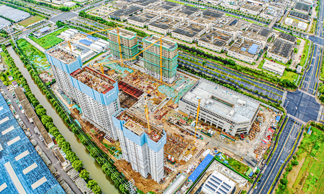 7月26日,蘇宿工業(yè)園區(qū)青年公寓項(xiàng)目施工現(xiàn)場,工人正在加緊施工。