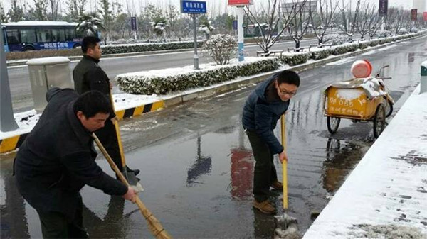 園區(qū)城管部門和建發(fā)公司迅速動員部署,啟動掃雪應急預案,建發(fā)員工和環(huán)衛(wèi)工人不畏嚴寒,早晨六點鐘就走上街頭路口,揮舞著鐵鍬和笤帚,一點點地將積雪清掃干凈,經過三小時的掃雪作業(yè),園區(qū)青海湖西路、玄武湖西路、陽明山大道等主干道已基本完成清雪工作,切實保障了市民出行。