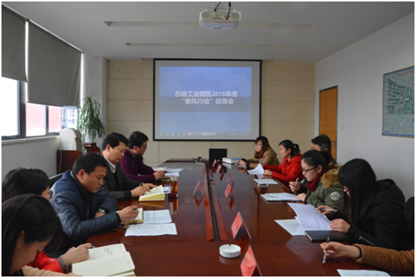 為搶抓春節(jié)招聘良機(jī),服務(wù)好園區(qū)企業(yè)用工,2月15日下午,園區(qū)召開(kāi)2015年度“春風(fēng)行動(dòng)”推進(jìn)會(huì),可成、長(zhǎng)電、天御、蘇瓷等7家園區(qū)重點(diǎn)用工企業(yè)參加了會(huì)議。
