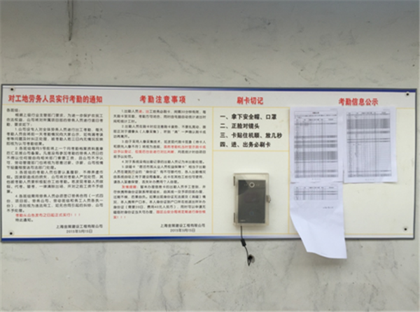 (圖為園區(qū)夢家園項目農(nóng)民工實名考勤處現(xiàn)場)