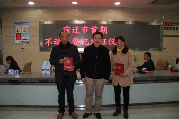 市國土局局長趙昌說:“園區(qū)不動產(chǎn)登記走在全市前列,今天宿遷市首期不動產(chǎn)權(quán)證書的正式頒發(fā),標(biāo)志著不動產(chǎn)統(tǒng)一登記制度在園區(qū)范圍內(nèi)全面啟動。”
