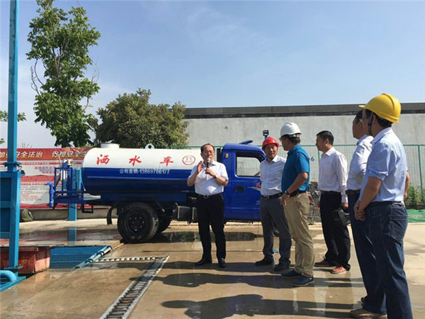 觀摩中,李榮錦對園區(qū)揚塵治理工作給予了高度評價,對現(xiàn)場自動沖洗設(shè)施、灑水車、文化教育長廊、施工展示區(qū)等一系列先進做法表示充分肯定,并要求在全市范圍內(nèi)推廣。