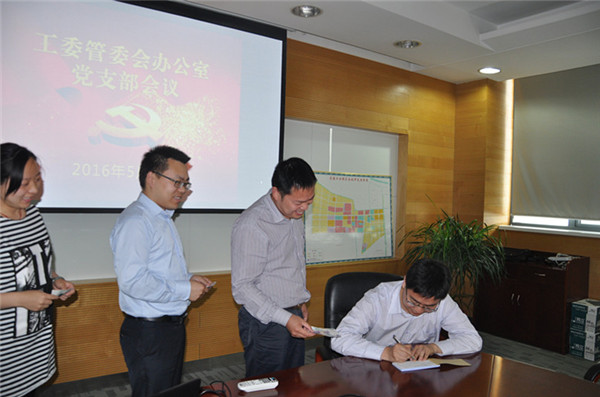 5月20日是園區(qū)工委管委會(huì)辦公室黨支部的黨員活動(dòng)日。活動(dòng)當(dāng)天,黨支部全體黨員按照?qǐng)@區(qū)“兩學(xué)一做”學(xué)習(xí)教育部署開展集中學(xué)習(xí)。
